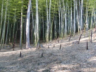 大人も子供も、家族で楽しくタケノコ掘り。靴さえあれば普段着のままでOKです。 |