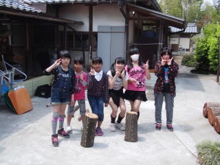 寺の裏山から原木のクヌギ(ドングリ)などを切る |
