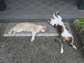 左の子ネコが仲良くなった野良ネコです。住みついてキレイになりました(年齢不詳) |