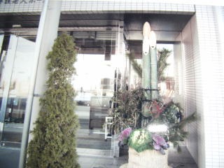 梅の枝を剪定して竹と一緒に持ち帰り、見事な正月飾りになりました。