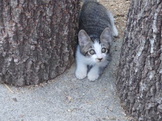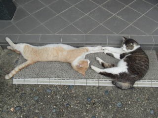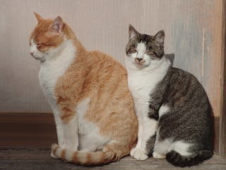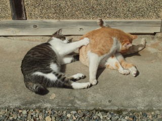 左の子ネコが仲良くなった野良ネコです。住みついてキレイになりました(年齢不詳) |
