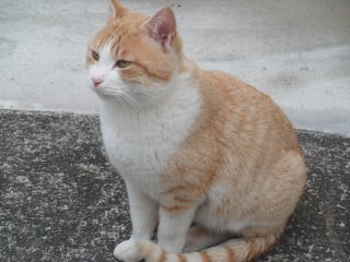 茶色のネコ(オス)は白黒ネコと仲良くなった野良ネコで、平成25年11月から住みついています。