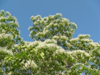 高さ8mくらいの大木になりました。毎年、5月の連休ころに10日間くらい開