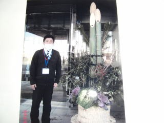梅の枝を剪定して竹と一緒に持ち帰り、見事な正月飾りになりました。