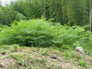 本堂の裏山に昔から自生しているタラの木です。周囲の木・竹・雑木等を切り、タラだけを残し育てています