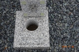 石塔の台座石に直径7cmの穴があり、納骨します。 |